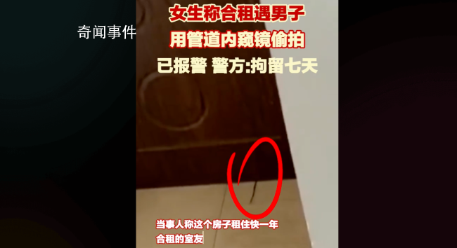 导读:女生发视频称遇变态室友用管道内窥镜偷拍。当事人称,自己在这个房子快住一年了,合租的室友中有一个男子,平时基本没有交集。昨天早上发现