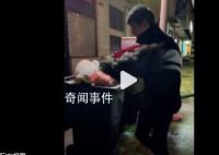 2月13日,江苏常州。情人节前夕,男子垃圾桶旁捡玫瑰花回家。妻子卢女士称,数了下大概有52支,情人节只是一种仪式,别人不要了自己捡回去
